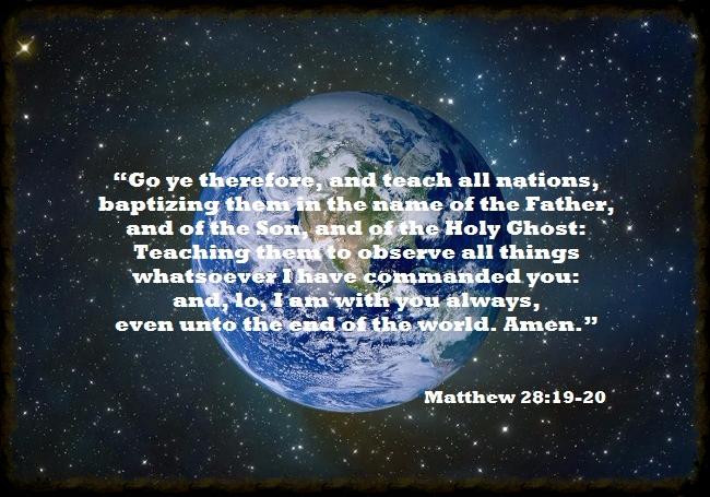 Empowered by the Holy Spirit, we must take this message of our King to the "ends of the earth" imploring men and women everywhere to be reconciled to God.