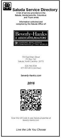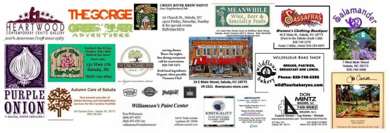 You can pick up a copy at these sponsors' locations and also at the Saluda Library, City Hall, US Post Office, Saluda Center, and Cathy Jackson Realty