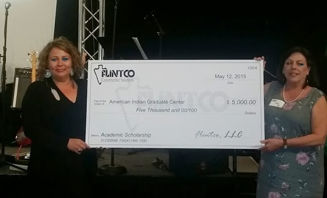 Flintco, LLC presented the American Indian Graduate Center (AIGC) with a $5,000 scholarship check during the American Indian Chamber of Commerce of New Mexico's 2015 Native American Economic Summit Opening Reception.