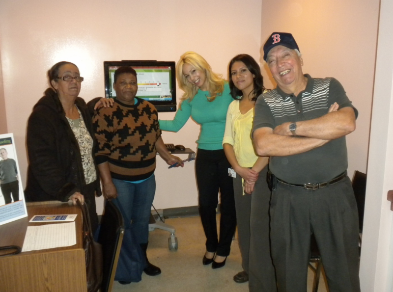 Using IN2L screens, the kiosk staff help residents on their own turf learn to tame the perhaps scary machinery. "They play memory games, Skype grandchildren who live far away, and develop relationships with the staff." The kiosks are specially designed to offer stimulating and fun experiences that can help people solve some of the problems that may be making it more difficult to manage daily life. This year a new program works with seniors on balance to avoid falling. Health care is also an important piece of the Living Well kiosks. Nurses check residents' vital signs and advise on wellness. Kiosk staff can connect with people who don't think they need services. Over three years they have had 8000 visits at the seven kiosks-two at the Wall Towers with elderly housing, one at the Lynn Senior Center, as well as sites in Beverly, Danvers, Gloucester, and Peabody. There is even a Roving Kiosk that sets up in |