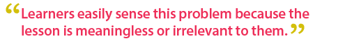 a classroom or elearning setting where instruction is the main approach, asking learners thought-provoking questions to draw their own interpretation and experience adds meaning and context to their work situation. A simple question like "what is your experience and how would you approach this problem?" would move the context of the content and make the content relevant to the learner.
