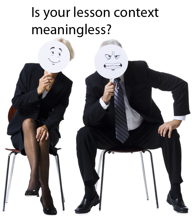 Many writers, designers and subject matter experts (SMEs) tend to look at content as a static idea. They focus on the object. They teach learners about the object of the content and fail to relate to a context. However, an even greater disservice to learners is not to move context depending on the different conditions (1). Learners easily sense this problem because the lesson is meaningless or irrelevant to them. This problem has its symptoms of over-reliance on teaching facts and