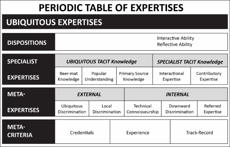 The model suggests that the value of expertise may occur at different levels depending on one's current competencies. It allows a far broader consideration of the different values of knowledge and contributions. What drew my attention is the idea that different ways people developed expertise is a product of how much they contribute and interact with others and allow modifications and refinements of individual expertise. Critically, it requires that we must always know the limits and contradictions of our own expertise and the ability to clearly articulate these limits.