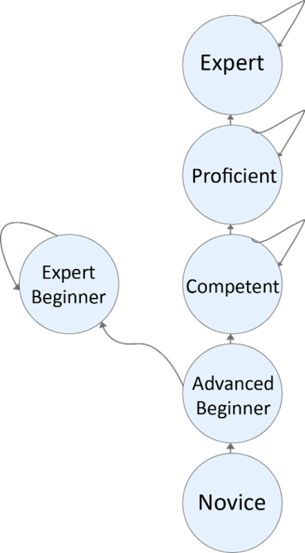 Erik Dietrich, a software architect has studied programmers and he observed the phenomenon of the the "Beginner-Expert." In How Developers Stop Learning: Rise of the Expert Beginner software developers are in high demand and the rapid phase of movement in organizations createsthe new type of "Beginner-Expert." These are perceived experts in very narrow skill areas who appear to have earned the reputation of being "experts." However, they have only been a few years on the job and have not advanced in their proficiency levels, yet, have entrenched themselves in silos of expertise areas. Dietrich believes this presents a problem because it leads to some form of incompetence referred to in Dreyfus model of skill acquisition. I shall continue to digest Dietrich's observations and reports.