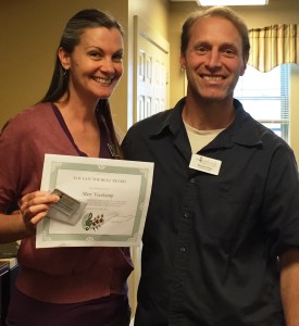 Congratulations to Mary Veerkamp who works in the Co-op's Marketing & Membership Department. She is our seventh employee to receive the Monadnock Food Co-op's "Beet Award." Mary got involved with our Co-op well before it opened in 2012 -- helping Michael, our General Manager maintain our Membership database. She shares her passion for healthy food with customers and staff daily, and regularly contributes excellent articles for the Co-op's e-newsletter and blog (like the one above!). Mary also created and presents our Natural Foods staff training class, which has been a huge hit and has inspired many of us to eat better. Mary is a gem and we're so lucky to have her on staff. Congrats Mary!