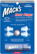 Mack's High Fidelity Ear Plugs The unique open-air membrane filter technology used to create Mack's "Hear Plugs" high fidelity musician's ear plugs ensures natural sound and comfort while reducing harmful noise. A super-low profile design allows for inconspicuous wear, while soft flanges ensure maximum comfort for the musician. Each package includes two sizes of comfort tips and one set of filters. Offering a noise reduction rating of 12 decibels, Hear Plugs provide hearing protection while minimizing the muffled sound often experienced with traditional earplugs. They are washable and reusable, and include a convenient aluminum keychain carrying case. Mack's Hear Plugs are great for musicians and concertgoers alike. Mack's Earplugs has been a leader in ear care since 1962. www.macksearplugs.com
