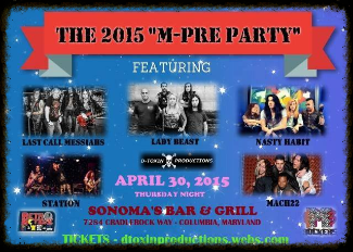 Here is the lineup for the M3 Pre-Party in Columbia, MD at Sonoma's Bar and Grill Thursday April 30: