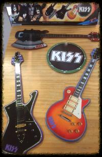 Check out our new Kiss instrument shaped  coasters plus a very cool Kiss umbrella with light up tube and flashlight in the handle.