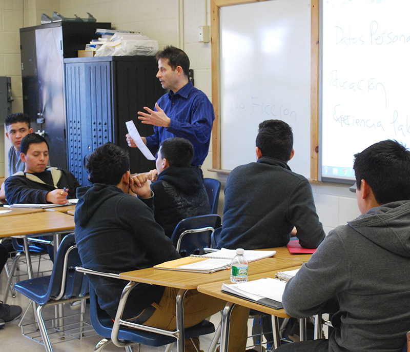 Academic courses are taught in English and Spanish (most of the students in the ELL program are from Central and South America). "A bi-lingual approach helps the students the most," explained Fernando Gomez, ELL teacher. "The more students develop literacy in their native language, the better they develop literacy in English."