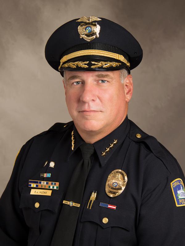 Chief Edward J. Hudak, Jr., a 26-year veteran with the department, has been named the new Coral Gables Police Chief after being appointed to the interim role in September 2014. The appointment was made today by City Manager Cathy Swanson-Rivenbark. "I make this appointment not only because of the highly responsive manner in which you have served the public this past year, as evidenced by the strong outpouring of support on behalf of this appointment, but also because of your personal commitment you have provided to me that you will lead at all times with honor, fairness and integrity," said the City Manager. "I appreciate the privilege to continue to serve the citizens of the Coral Gables community," said Chief Hudak. "I look forward to all the challenges that we face as a community and police in general. I am also ready to embrace a partnership within the Coral Gables Police Department, law enforcement and the community to better serve and protect us all." Chief Hudak has been with the Coral Gables Police Department since 1988. He has undergraduate and masters degrees from the University of Miami. He is also a graduate of the FBI National Law Enforcement Executive Academy.