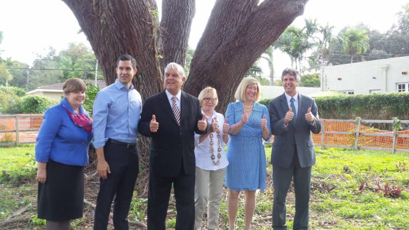 Last week, the City of Coral Gables hosted a signing ceremony to close the purchase of two lots of approximately 10,000 square feet on Lisbon Street to protect beautiful specimen oak trees. Members of the City Commission directed staff to negotiate the purchase of these lots as part of an agreement with property owner PalmCorp Development Group. The lots in this North Gables neighborhood contain three oak trees with heights of approximately 50 feet and a spread of 50 to 60 feet. This area will now be transformed into a desirable green space for the benefit of the public. More than 100 neighbors supported the effort to save the oak trees from removal.