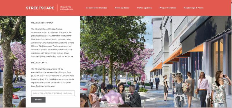 Un nuevo sitio cibernético ha sido publicado para ofrecer la información más reciente sobre el Proyecto de Embellecimiento de Miracle Mile y Giralda Avenida, el cual ya ha comenzado. Esta página web es el esfuerzo de la compañía constructora encargada de coordinar todo lo relacionado con el proyecto, tales como informaciones semanales sobre la construcción, afectaciones del tráfico, fotos de la construcción, así como el horario estimado de trabajo. El público puede inscribirse en esta página para recibir la información más reciente sobre el proyecto. Todos los negocios de esta zona se mantendrán abiertos durante la construcción. Existe estacionamiento de valet a un costo solamente de $5 por día. Lea más...