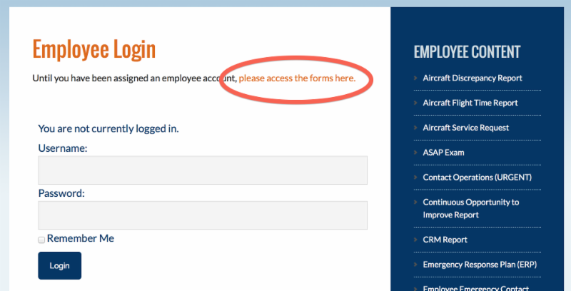Please note: The portal will not be set-up until a week or two after the website launches. In the meantime, you can access forms and documents on the current employee page by clicking the link circled in red below. The current password also will not change. When the new portal is ready, you will be notified with your new username/password information.