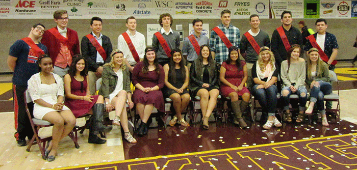 Reigning over this year's Homecoming activities are (front row, l-r) Fatuma Abdi, Abby Aguirre, Jodi Blomdahl, Olivia Bateman, Mayra Pantoya, Rakell Barrios, Cristal Sanchez, Ali Groshong, Scarlet Ahmad and Ashton Carow; (back row l-r) Hasan Amhaz, Elias Gale, Ivan Garcia, Caleb Camilli, Ronnie Thompson, Doug Wilbur, Ben Pearson, Bobby Taylor, Skyler Gober and Eric Rodriguez |