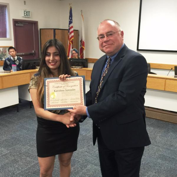 Katrina Hirsch was recognized as an outstanding student for her strong determination, hard work and thirst of knowledge. Katrina was recently honored as the Castro Valley Eden Area Chamber of Commerce Student Citizen of the Year. Read the full recognition here.
