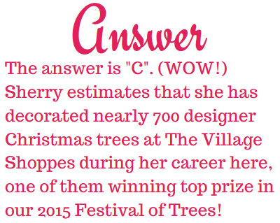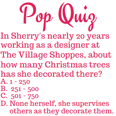 Here's a "Behind the Scenes" peek at Sherry Decraene, an essential character in our design team (and she truly is a character)! In addition to being a Silk Designer Extraordinaire, Sherry is also our resident Christmas Tree Design Specialist. Which brings us to our...