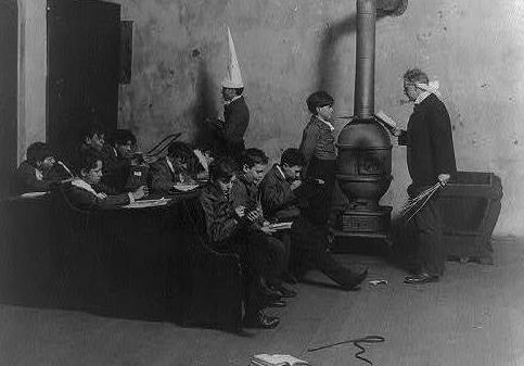 Forget about laptops and gel pens; students in the "old days" made do with just a slate and some chalk. Discipline was very strict. Sure, stepping out of line in the 1800s and early 1900s could result in detention, suspension, or expulsion, but it could also result in a lashing!