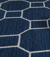 Gia Indigo Extraordinary Geometric that is Wilton woven in USA of premium New Zealand wool. Available as 12' wide broadloom or contact us for a quote on a finished area rug. Broadloom is F.O.B. PA Order Free sample SKU#:12313981