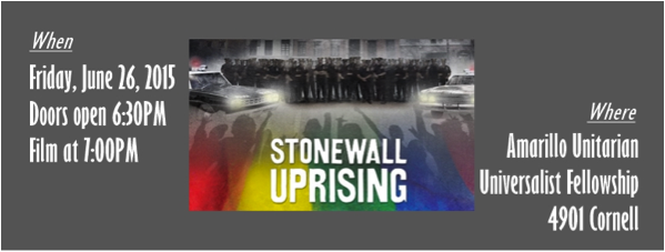 The kickoff event for Panhandle Pride is a Film Festival at AUUF on Friday, June 26: a special screening of the documentary Stonewall Uprising. Are you wondering why gays have Pride events in June? When police raided the Stonewall Inn, a popular gay bar in the Greenwich Village section of New York City on June 28, 1969, the street erupted into violent protests that lasted for the next six days. The Stonewall riots, as they came to be known, marked a major turning point in the modern gay civil rights movement in the United States and around the world. Join us for this special screening, made possible by Panhandle PBS and American Experience, and take part in the discussion led by Rev. Bernie Barbour, pastor of the Metropolitan Community Church, following the screening.