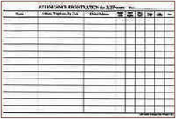 Attendance pads replace the guest information cards used previously. They serve the same purpose as guest cards, while also allowing members to update information such as address, phone, or email. Guests who register their attendance are added to the Fellowship's newsletter list, and are invited to attend Path to Membership sessions and other events.