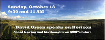 I know this is a sudden and drastic change and I know there is a grieving process that must begin. Let us all honor that, but we also must come together to ensure that our Beloved Community continues our growth and momentum. David has done an amazing job of leading us on a positive course, giving AUUF a presence in the community-at-large, and showing us what is possible for our future. For this and much more, we are deeply grateful and wish him well on his new endeavor.