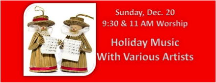 Holiday Music Service with various artists-including a congregational sing-along led by Jason Hudson and performances by other musicians, including Mike Fuller and Those Guys and more in lieu of a sermon.