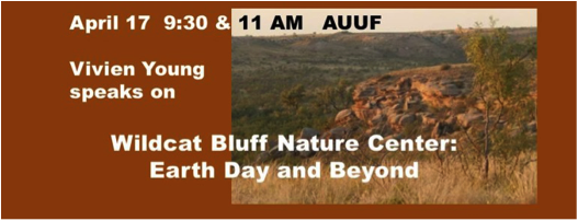 Vivien Young speaks on Wildcat Bluff Nature Center: Earth Day and Beyond. We need nature and nature needs us.