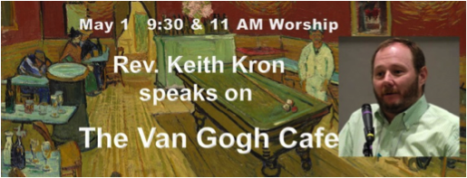 Rev. Keith Kron, Director of UUA's Transitions Department, Boston, speaks on The Van Gogh Café. Living our Unitarian Universalist values isn't always as easy as we would like it to be. Often what we strive for is not what actually happens. How can we improve the odds that we will lead with our best values inside and outside our congregation? This sermon will explore these issues as they pertain to your next minister and the ministerial search process. A time of questions and answers with Keith open to all congregants will follow the service.