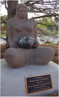 Claudia Stravato and Jerry Stein speak on Is There No Place to Honor Him? How the memorial of Bishop Leroy Mathiesen and the Madre de Mundo statue got to the front patio of the Fellowship.
