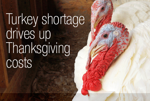 This year fresh birds may be hard to come by, after the Avian flu wiped out 45 million turkeys and chickens across the country this spring and summer. Prices have gone up about 20 percent on frozen turkeys from last year. Fresh turkeys are up about 25 percent, grocery stores are reporting. If you have been waiting to pick up your turkey closer to the big day-you might want to rethink your strategy. The next time you go for groceries, you may want to make a pit stop in to talk turkey so that you aren't left bird less. Read more here.