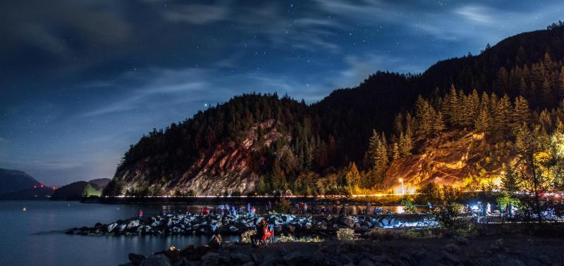 Visitors wait for a rare show of northern lights at Porteau Cove, outside Squamish. Credit Remy Scalza.