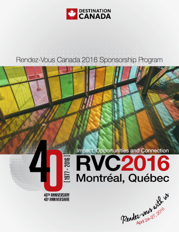 Rendez-vous Canada 2016 takes place April 24-27 in Montréal and this year's sponsorship program offers you the most dynamic platform to position your brand to a targeted audience of over 420 nominated, hosted global buyers and more than 525 travel and tourism organizations from every province and territory in Canada.