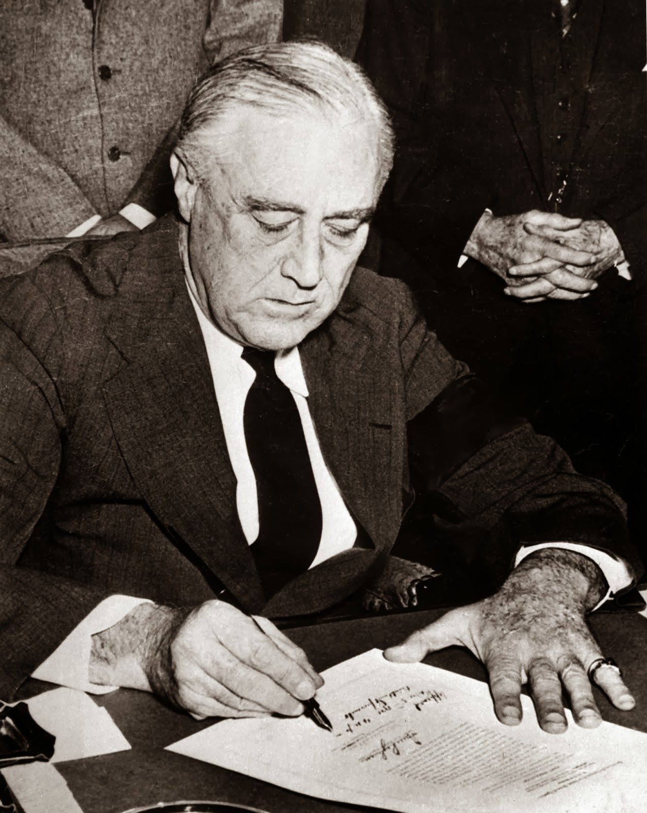 December 8, 1941 - The United States Congress voted to declare war on the Empire of Japan following that nation's attack upon U.S. military installations in Pearl Harbor, Hawaii, the day before. There have only been five conflicts in the history of the United States wherein war was formally declared by Congress: the War of 1812, the Mexican-American War (1846), the Spanish-American War (1898), World War I (1917), and World War II (1941). However, there have been a total of eleven declarations of war by Congress. During World War II alone there were six separate declarations of war: against Japan (12/8/41), against Germany (12/11/41), against Italy (12/11/41), against Bulgaria (6/5/42), against Hungary (6/5/42), and against Romania (6/5/42).