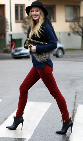 Elevate a simple pair of red cigarette pants by adding a detailed top, statement clutch and fabulous pair of shoes to ensure you look stylish but are also comfortable whilst sharing some popcorn with your love...