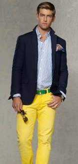 Men will often run away at the thought of a yellow suit but what about a yellow tie? A yellow tee, trainers or even yellow jeans. Or try a pocket square, the latest accessory to wear.