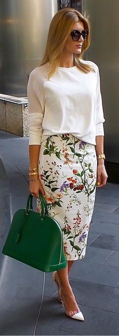 Floral prints can work for the office when paired with chic, tailored pieces. A pencil skirt with a subtle floral design works perfectly in a working environment. Wear with a simple top and pick out one of the colours from the print with your accessories to pull your look together.