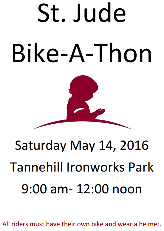 The Bike-A-Thon helps raise money for St. Jude's Children Hospital based on the distance each rider rides. Refreshments will be provided for all of the riders.