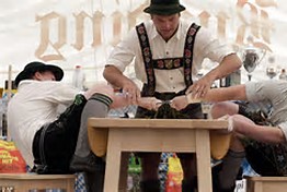Fingerhakeln (also: Hagglziegn and Steirisch-Hackelziehen) was an Alpine wrestling hybrid that seems to have been competed primarily in the Austrian Alps. This unusual grappling game is sure to be of interest to grip-strength aficionados. The two competitors would sit across a table from one another in chairs and place one hand behind their backs. The other arm would be extended across the table with the middle finger extended. The competitors would then hook each other's middle-fingers together and the game commenced.