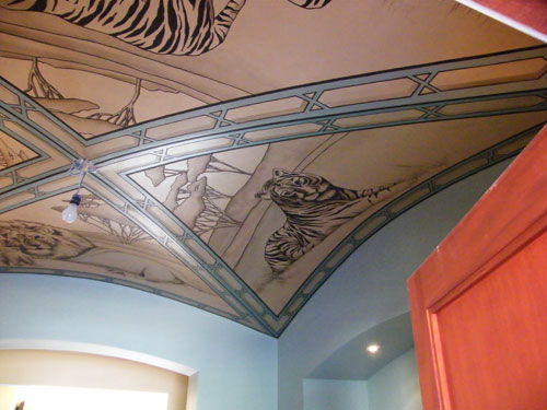 This ceiling is to date, the largest curved or barrel ceiling I have painted.