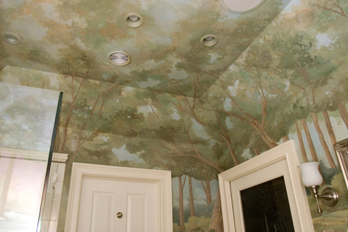 This bathroom was a mystical woodland design. The trees rose from the walls onto the ceiling forming a canopy. I have promised myself to someday paint something like this for myself in a space where I can read and sleep. I'd be very happy, trust me.
