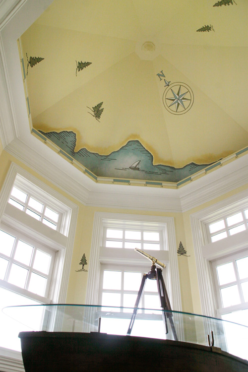 A less formal map approach captures the charm of this ceiling in a room looking out on the lake.