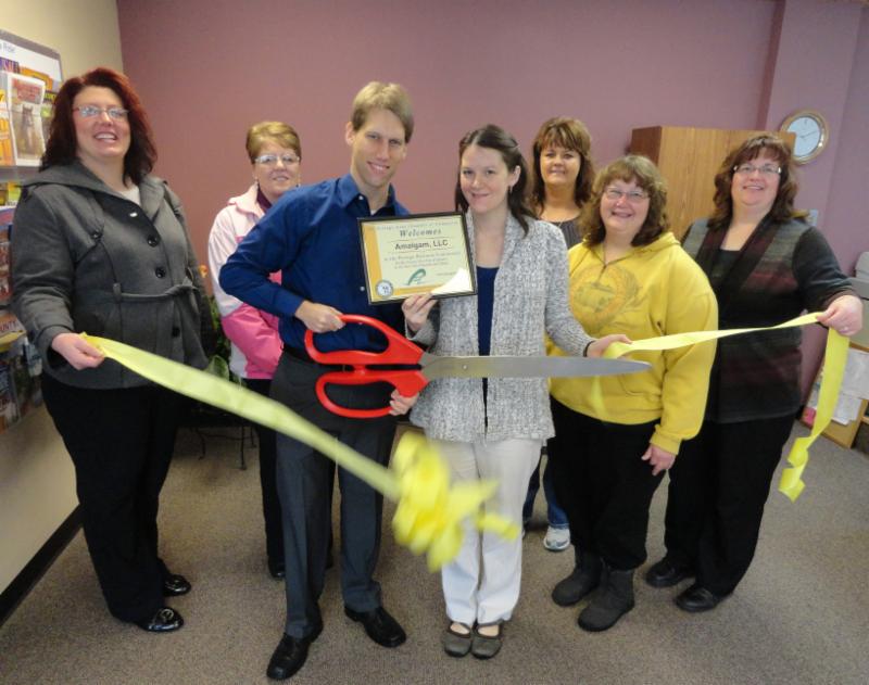 A ribbon cutting was held at the Portage Chamber for Amalgam, LLC to welcome this new business to Portage. Josh and Kim Ciolkosz recently opened this web and design company.