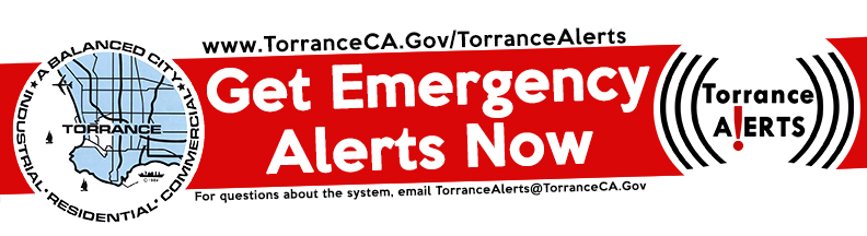 The City of Torrance mass notification system, TorranceAlerts, enables you to get informational messages from the City in the event of an emergency. TorranceAlerts also lets you opt-in for other informative messages including major weather events, traffic, community events, library information and more. TorranceAlerts is provided by the City to help make sure you have the information you need when you need it. Register Now...