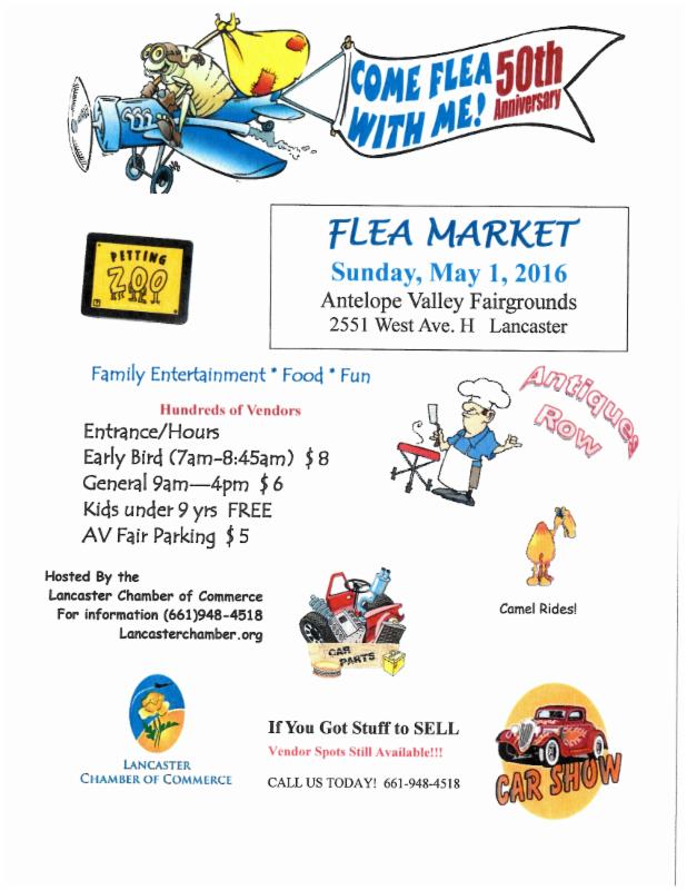 - Reserve your space for the Lancaster Chamber of Commerce's Flea Market and Shop Local Showcase on Sunday, May 1st. This year, we are celebrating the Flea's 50th anniversary and you won't want to miss this super-sized event!