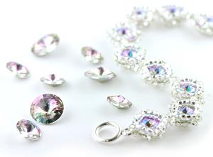We have expanded our range of sparkly Swarovski 1122 Rivolis to include sizes SS47 (approx. 10.5mm) and SS39 (approx. 8mm). These lovely small fancy stones are great for bead weaving projects, like our Netted Rivoli Diamond Bracelet workshop.