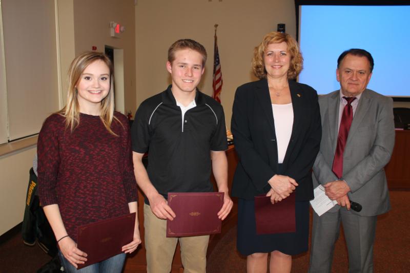 On Monday evening the Board of Education recognized Elizabeth Skantz and Carsten Gottfredsen-Kromke, both Case High School students, for earning top honors on the National German Exam. Elizabeth and Carsten both earned Silver awards placing them in the top 20 percent of German students in the nation.