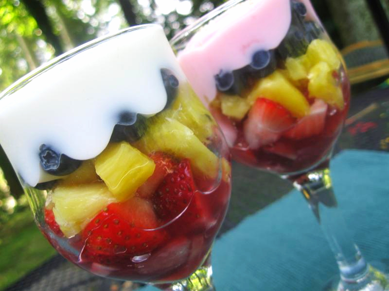 Combine fruit and pineapple juice in a large bowl and let stand for 15 minutes.