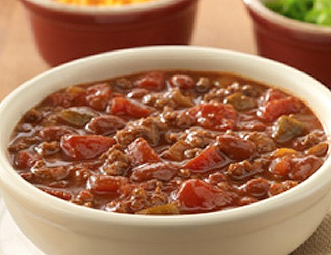 1 lb. group beef 1 onion, chopped 2 cups light red kidney beans, cooked 1 can tomato soup (no water added) 1 Tbsp. chili powder, or to taste 10 drops hot pepper sauce or to taste Preparation: In a large skillet, cook the meat for about 10 to 15 minutes or until brown. Drain the meat, add the onion, and cook for five minutes. Add the kidney beans, soup and chili powder and heat for five minutes or until hot. If using hot pepper sauce, add the sauce then, too. Serve alone or on top of whole wheat pasta or rice. Makes: 6 servings