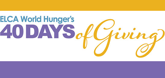 40 Days of Giving Lift up the life-changing work of ELCA World Hunger through new levels of giving--spiritually, intellectually, and financially--starting with Lent. Beginning Sunday, February 7, and extending through the season of Lent, congregations across the ELCA will join together to raise $2 million to benefit the ministries of ELCA World Hunger. This support will enable crucial work to get underway and help us kick-start the ELCA's year-of-emphasis. Learn more here.