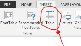 To try it, put your cursor anywhere in your data population. Then choose "Insert," "Table" from your menu options.
